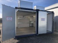 Following demands for mobile work spaces in the film and television industry we have developed a mobile spray booth which enables you to carry out paint spraying in a safe, heated and secure environment. The spray room can be lifted into place and set up quickly and easily on your site by our engineers in just 1 day. Our mobile spray booths are manufactured using 20ft high cube shipping containers. Built on a modular design we are able to manufacture to customers specific size requirements. By cutting and strengthening the containers the width of the spray room is endless. A 2.3 meter wide load width means large items can be accommodated with ease.
